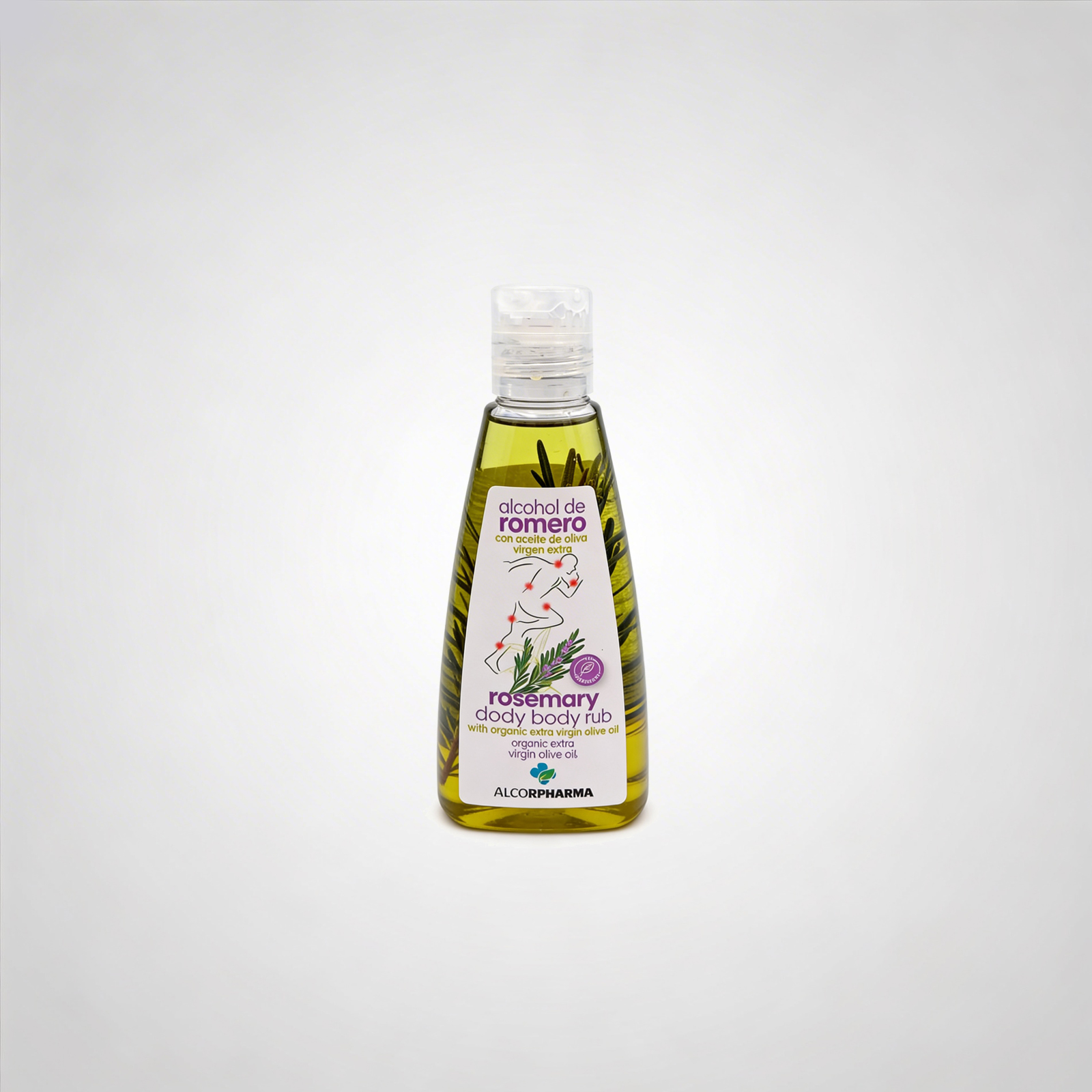 Fricciones y masaje corporal con sensación tonificante. Alcohol de romero con AOVE para fricciones y masaje corporal.
