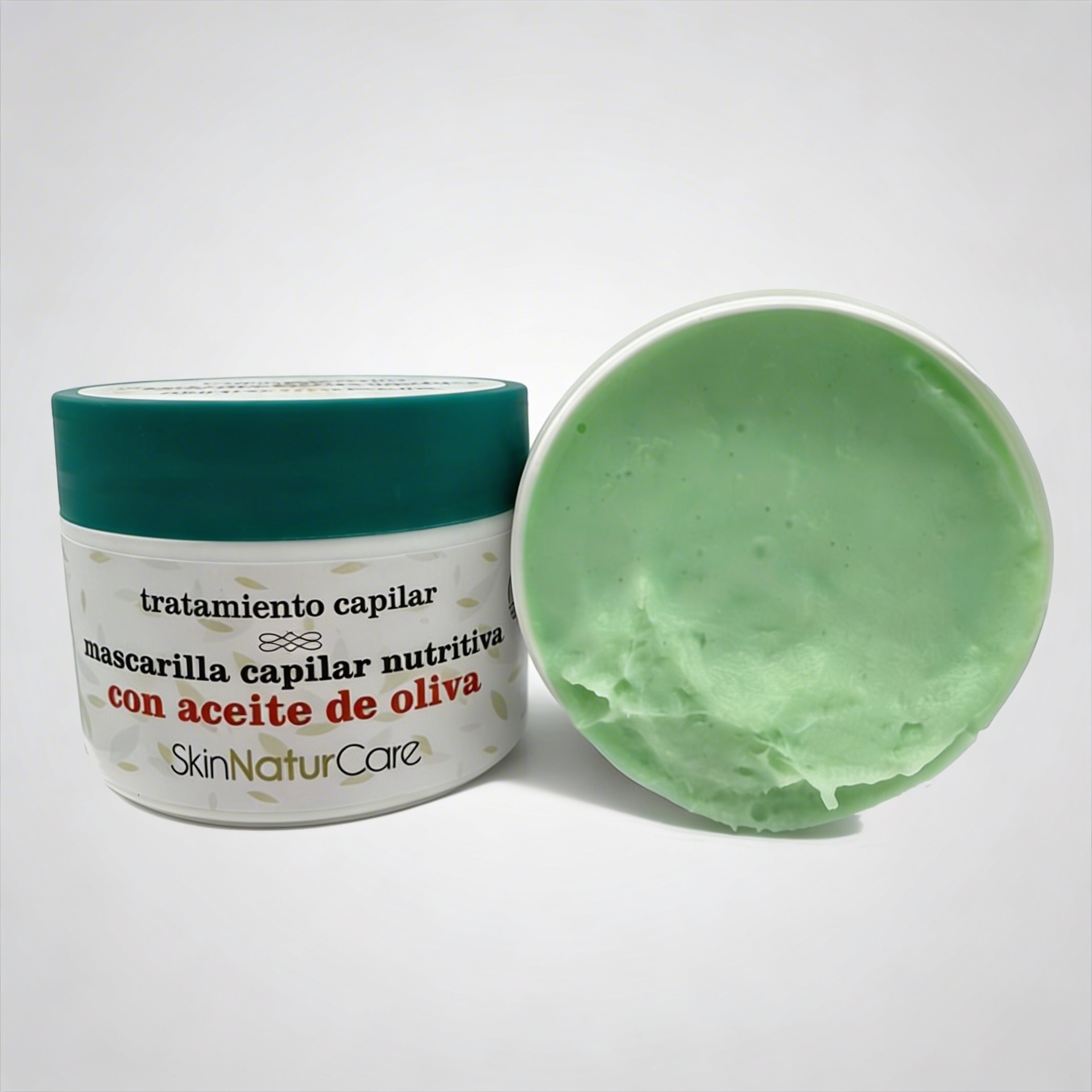 Aporta nutrición y suavidad al cabello, con AOVE. Mascarilla capilar nutritiva con AOVE para suavidad y brillo.